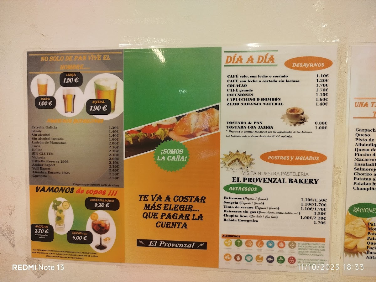 Introducing the menu at Bar El Provenzal, Pasteleria cafeteria is an experience that celebrates affordability and flavor. Nestled in the heart of Salamanca on Pl. Libertad, this tapas bar offers an enticing array of dishes, making it a favorite among locals and passersby.